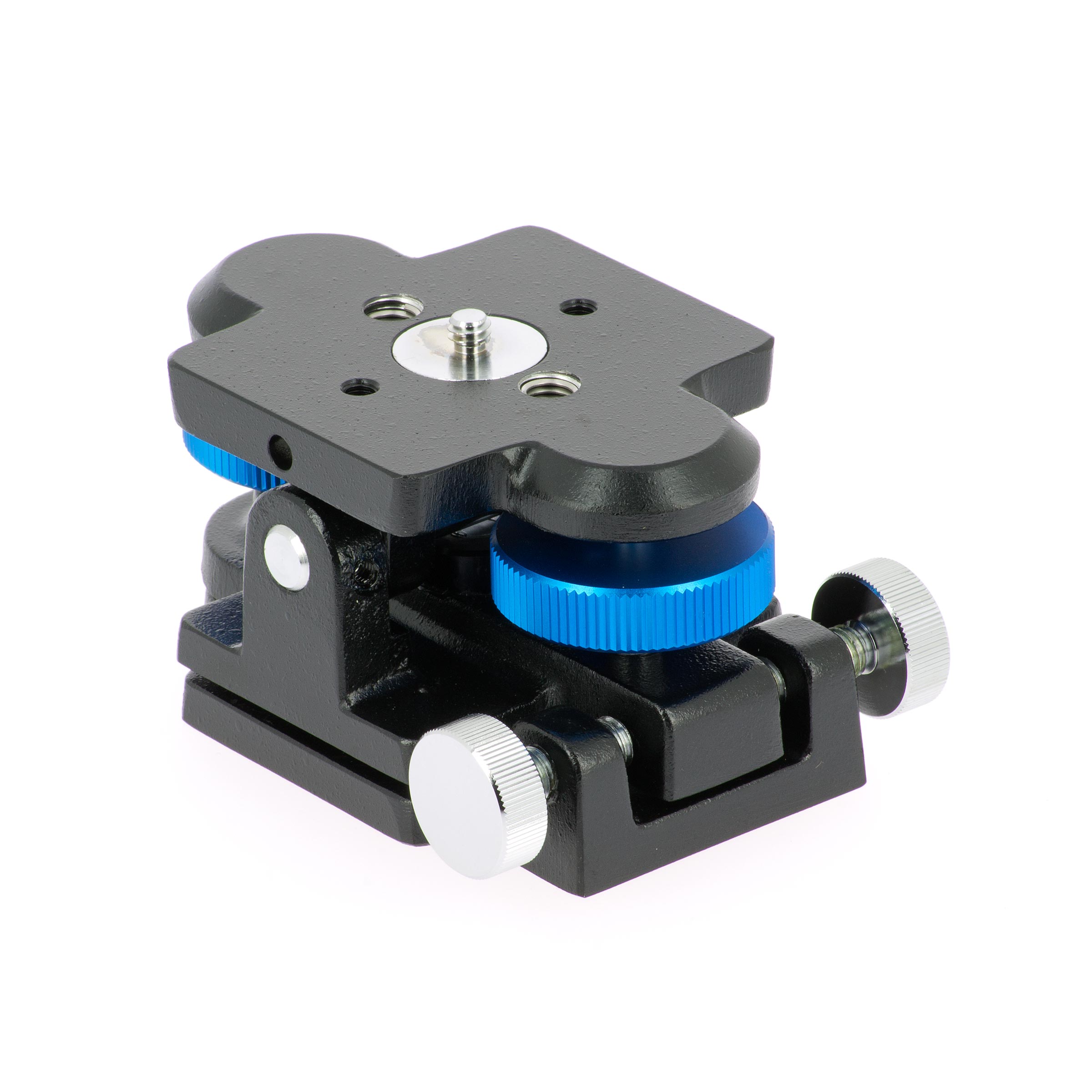 The Takahashi AZ Guidescope Mount has 2 fine movements with double knobs, one for azimuth adjustment, the other for tilt adjustment. The gearing is large and the movements are smooth, making pointing very accurate. The range of movement is 10° in azimuth and 5° in height.